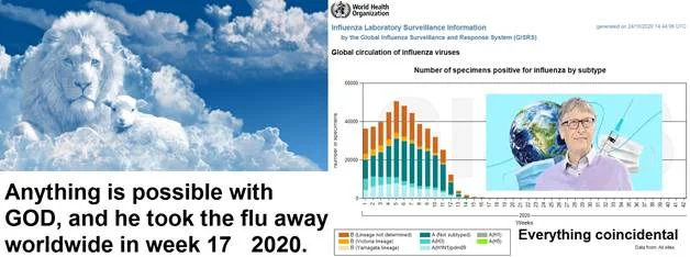 Dann sehen Sie eine Tabelle, die Ihnen zeigt, dass es ab der 17. Woche 2020 weltweit keine Grippe mehr gibt !!!!!!!!